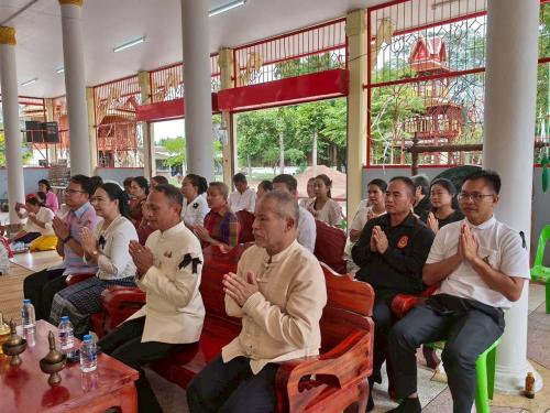 อำเภอพยัคฆภูมิพิสัย จังหวัดมหาสารคาม : จัดกิจกรรมทำบุญตักบาตรข้าวสาร อาหารแห้ง ตามโครงการถนนสายวัฒนธรรม ประจำปี 2568