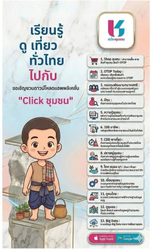 ขอเชิญชวนดาวน์โหลดแอพพลิเคชั่น "Click ชุมชน" เพิ่มช่องทางสนับสนุนสินค้า OTOP กระจายรายได้สู่ชุมชน